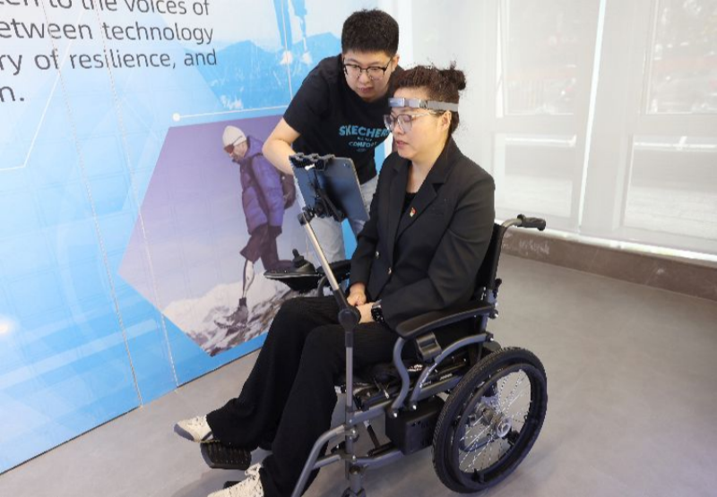 L'invitée a testé un fauteuil roulant à interface cerveau-ordinateur et IA, qui utilise une technologie multimodale d'interface cerveau-ordinateur pour détecter avec précision les intentions de contrôle cérébral et permettre le mouvement multidirectionnel du fauteuil roulant.