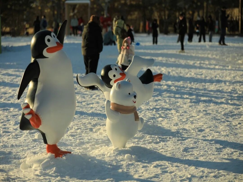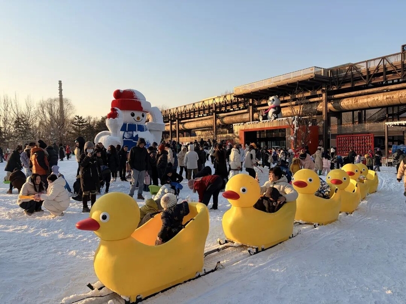 En pénétrant dans ce parc, on a l'impression de plonger dans un monde féerique : un bonhomme de neige géant salue les visiteurs depuis son tapis blanc, des chalets de glace offrant des espaces de repos se parent d'une ambiance nordique – chaque coin est une photo hivernale exclusive. Un train d'adorables canards jaunes propose des balades, permettant aux petits comme aux grands de goûter aux joies de la glisse.