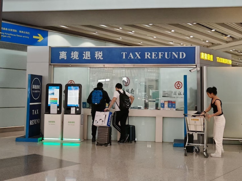 Des touristes effectuant une demande de détaxe à l'aéroport international de Beijing-Capitale.