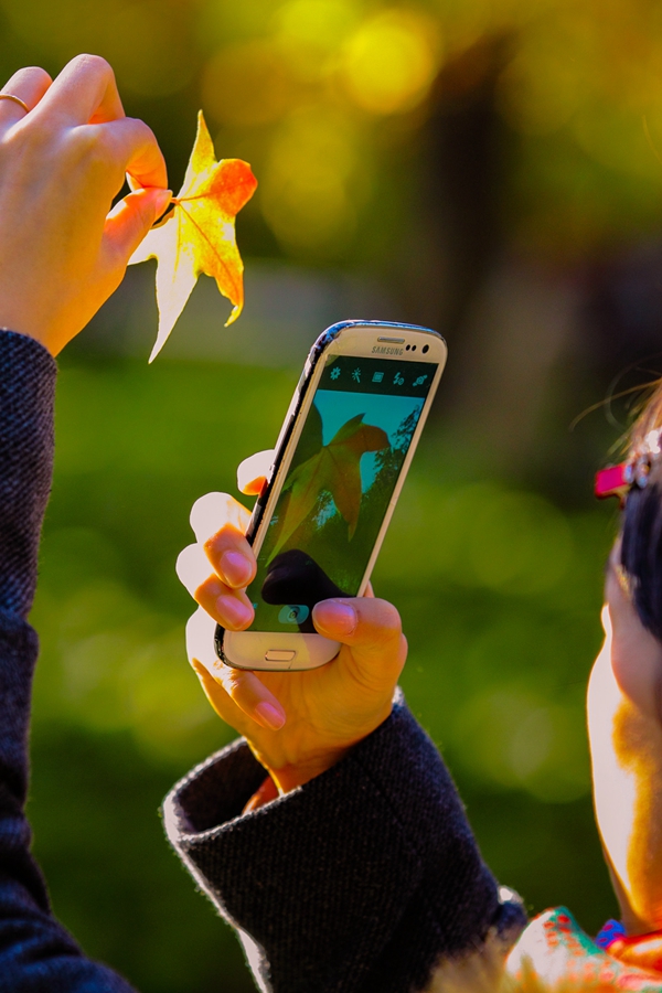 Des visiteurs photographient les feuilles mortes dans le parc Ditan.[Photo prise en 2014, Bruce Connolly (Royaume-Uni)]
