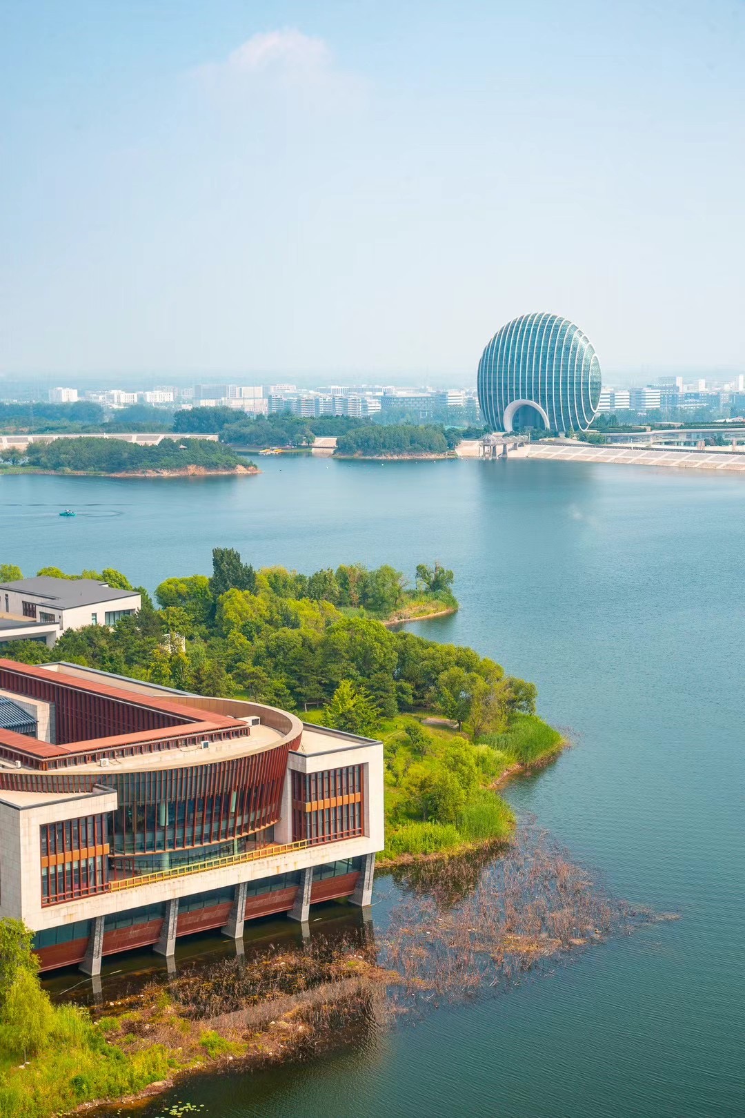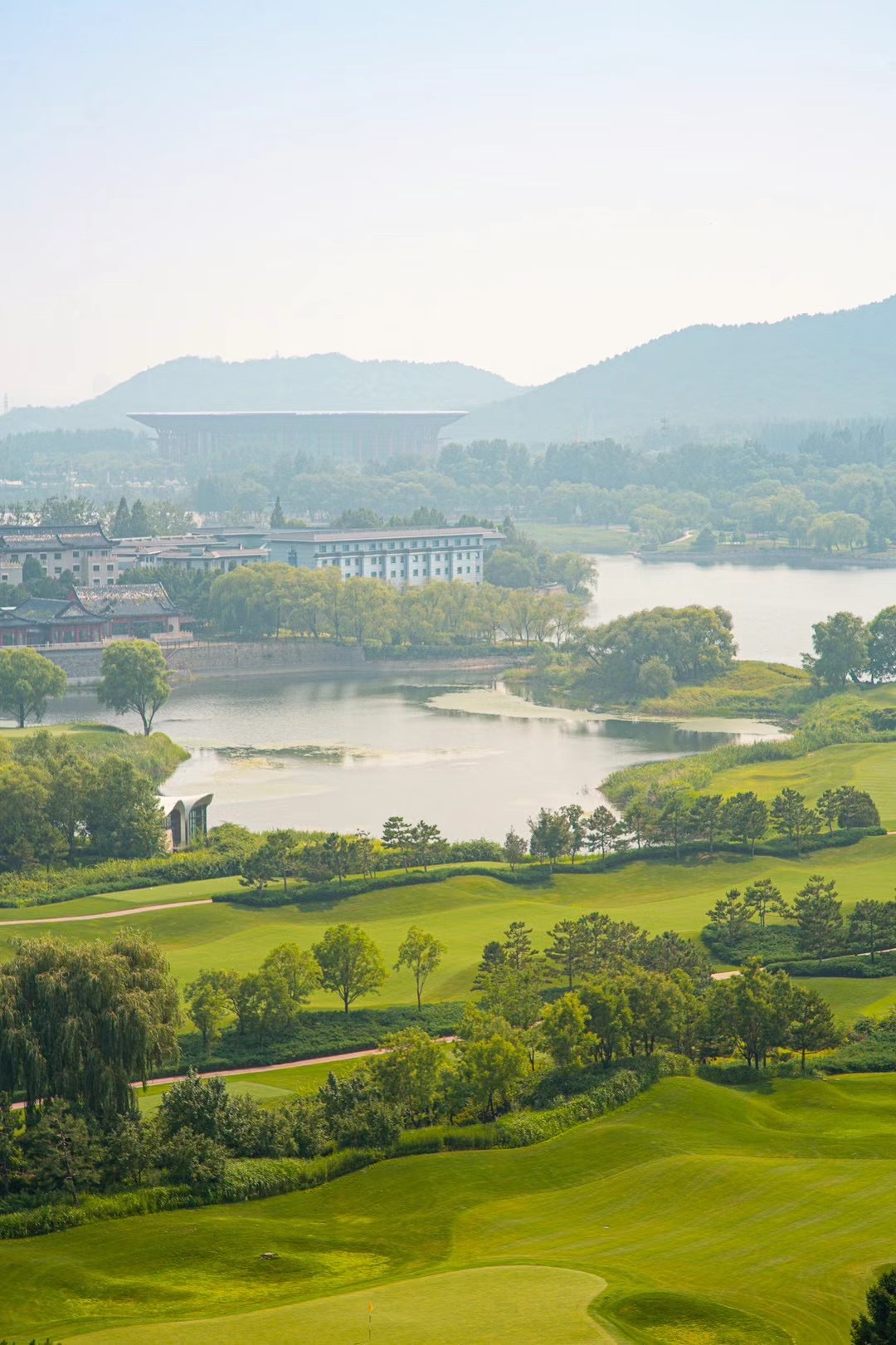 L'hôtel Kempinski Sunrise Orient et le lac Yanqi se reflètent l'un dans l'autre.