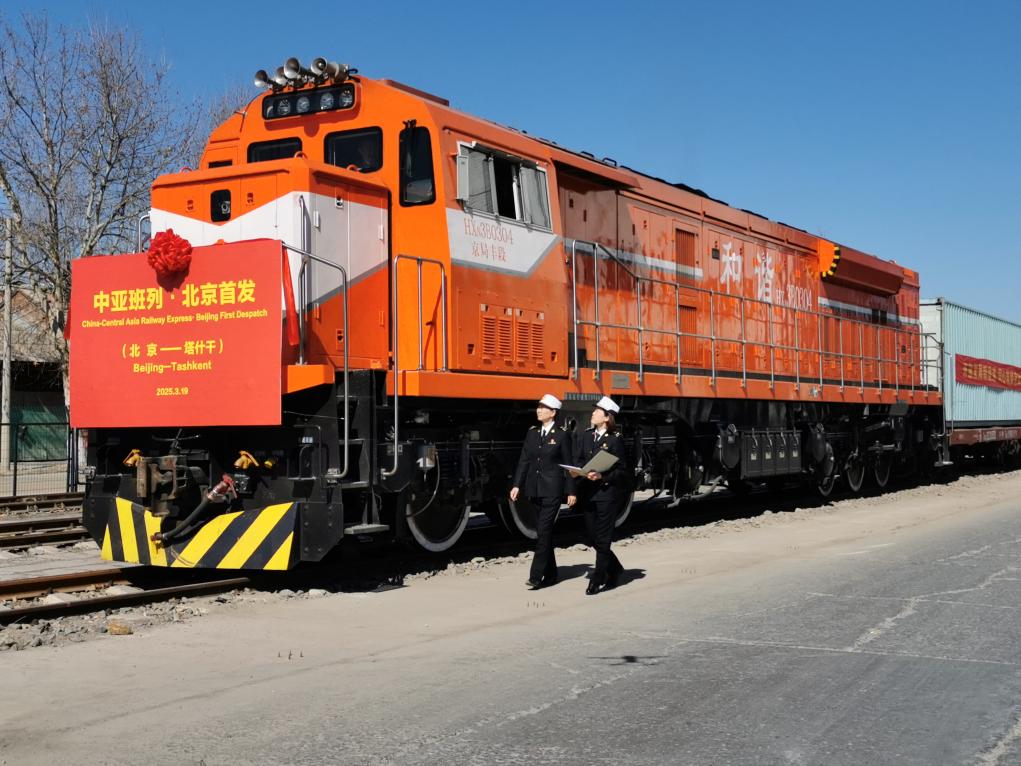 Un train de marchandises à destination de Tachkent, en Ouzbékistan, a quitté Beijing à 10h00 aujourd'hui, mercredi, marquant l'inauguration officielle du premier service de train de marchandises Beijing-Asie centrale.
