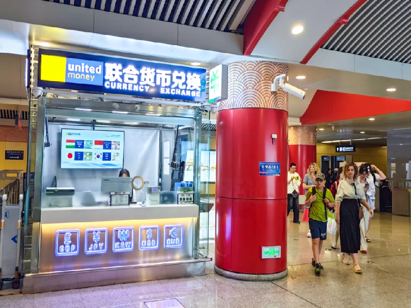Récemment, le tout premier bureau de change du métro de Beijing a ouvert ses portes à la station Wangfujing sur la ligne 8. À l'intérieur de la sortie E de la station Wangfujing, un guichet « United money : Currency Exchange » est installé. Ce point de change propose jusqu'à 40 devises, incluant des monnaies courantes telles que le dollar américain, l'euro, le yen japonais, mais aussi des devises plus « exotiques » comme le dong vietnamien, la livre égyptienne ou le ringgit malaisien. Les citoyens peuvent échanger des devises avec leur carte d'identité chinoise de deuxième génération, tandis que les ressortissants étrangers peuvent échanger des devises avec leur passeport ou d'autres documents d'identité.