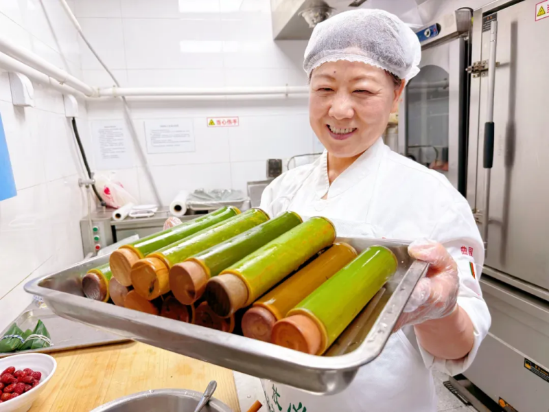Les zongzi de l'enseigne sont faits et cuits à la vapeur instantanément sur place. En plus des zongzi aux dattes qui sont moelleux, collants et légèrement sucrés, les clients peuvent également acheter des zongzi à la purée de haricots rouges.