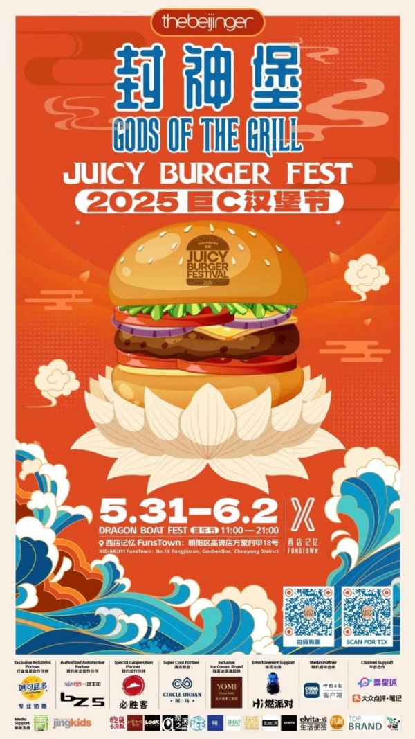 Le Juicy Burger Fest 2025 est arrivé ! Pour le Festival des bateaux-dragons (du 31 mai au 2 juin), rendez-vous à FunsTown du quartier Xidianjiyi dans le district de Chaoyang à Beijing, pour admirer les talents des maîtres du burger ! Près de 60 marques de burgers renommées et plus de 140 variétés de burgers… même l'air est imprégné de l'arôme de la viande juteuse et du fromage fondu.