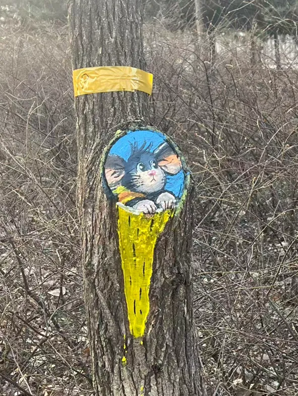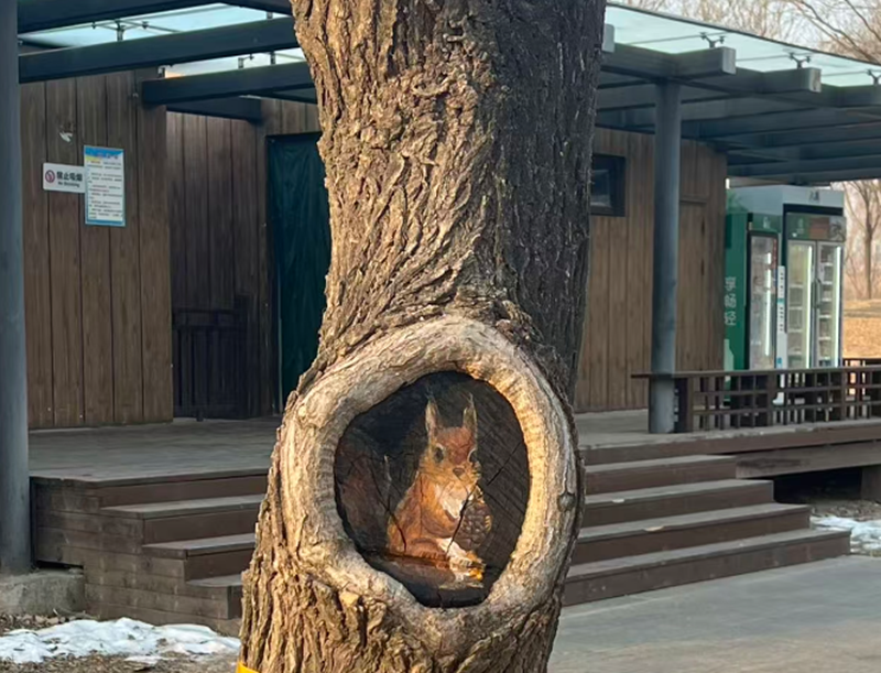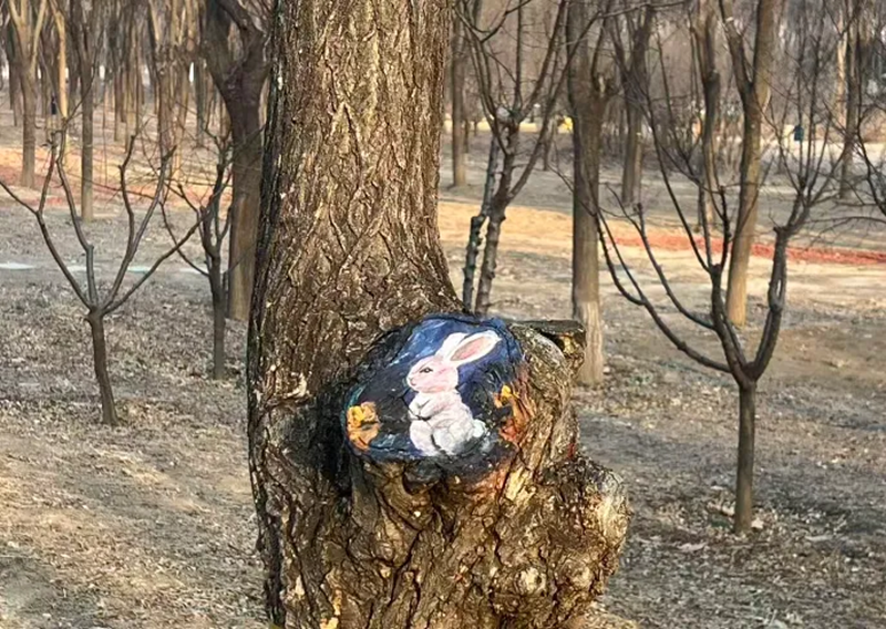 Le parc a utilisé les trous d'arbres naturels de formes variées le long des sentiers qui dessinent comme toile pour lancer une activité de peinture colorée sur le thème « La vie dans les trous d'arbres – Rencontrez les mignons petits amis du parc Nansen ». Des images de dessins animés comme des hérissons, des oiseaux et des canetons pointent la tête hors des trous d'arbres, insufflant une énergie vivante au parc en hiver.