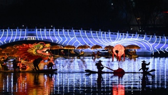 Un spectacle folklorique venu de Yangshuo, dans la région autonome zhuang du Guangxi (sud de la Chine), a été présenté le soir du 22 mars sur la rivière Liangma, à Beijing.