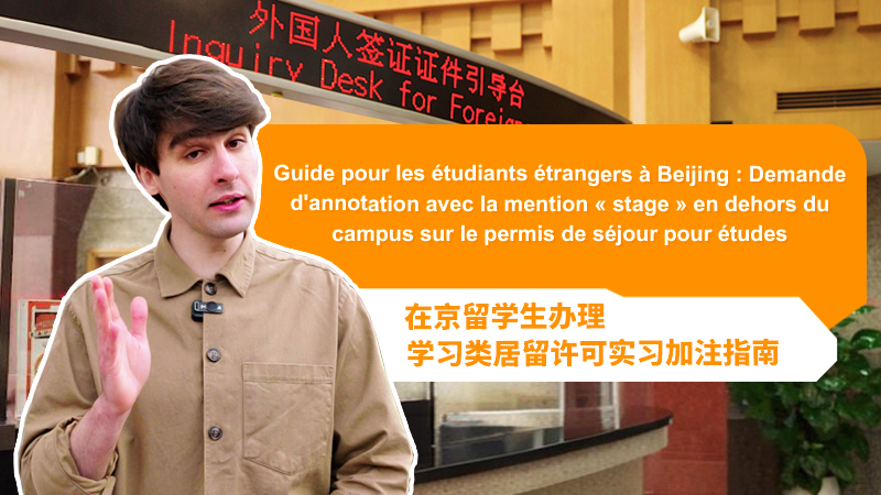 Guide pour les étudiants étrangers à Beijing : Demande d'annotation avec la mention « stage » en dehors du campus sur le permis de séjour pour études