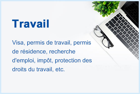 Visa, permis de travail, permis de résidence, recherche d'emploi, impôt, protection des droits du travail, etc.