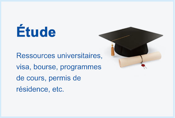 Ressources universitaires, visa, bourse, programmes de cours, permis de résidence, etc.