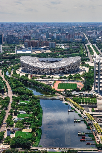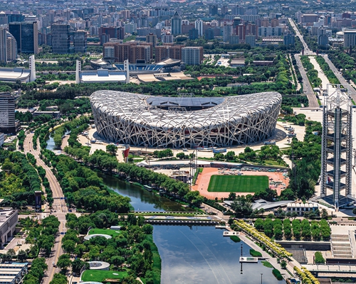 Présentation : Situé au cœur du parc olympique de Beijing, il s'agit du stade principal des Jeux olympiques de Beijing 2008. Il couvre une surface de 258 000 m² et peut accueillir jusqu'à 91 000 spectateurs.