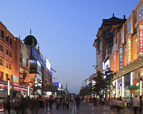 Présentation : L'avenue Wangfujingdajie s'étend du sud à partir de l'avenue Dongchang'anjie, jusqu'au Musée national des beaux-arts de Chine au nord. Elle mesure environ 1 600 mètres de long, et constitue le quartier commercial le plus célèbre de Beijing.