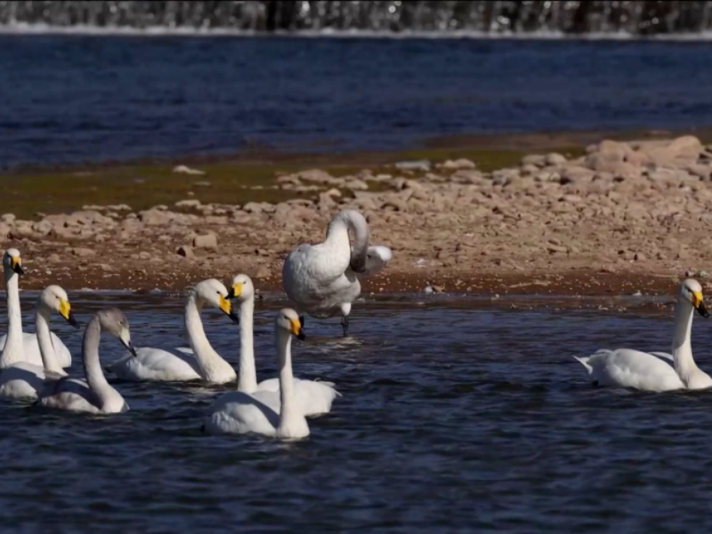 Ces trois espèces de cygnes sont toutes classées comme espèces sauvages protégées de catégorie II au niveau national. Leurs routes migratoires, périodes d'escale et zones de répartition étant différentes, leur habitat mixte sur un même secteur de rivière est extrêmement rare.
