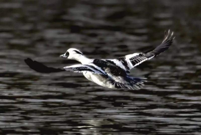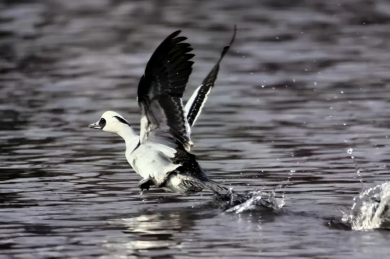 Le harle piette, également appelé canard à lunettes, est surnommé affectueusement « canard panda » en raison des taches noires distinctives autour des yeux du mâle, qui ressemblent aux yeux d'un panda.