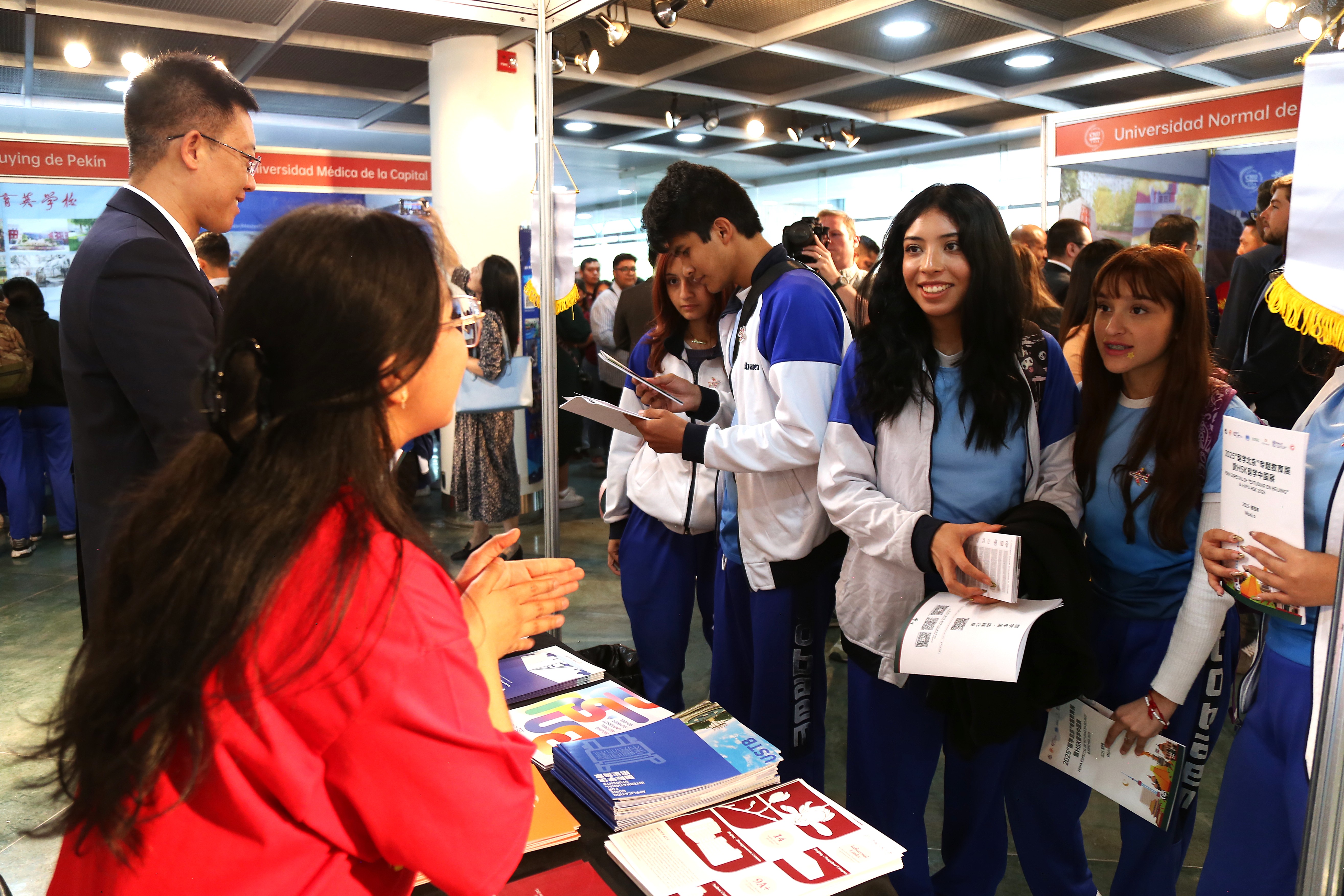 Cette exposition visait à renforcer l'influence internationale de l'éducation de Beijing, à offrir aux universités et lycées pékinois une plateforme internationale pour présenter leurs atouts, à élargir les canaux de recrutement d'étudiants internationaux et à promouvoir la marque « Étudier à Beijing ». Des établissements renommés tels que l'Institut de Technologie de Beijing, l'Université de Médecine de la capitale, l'Université normale de la capitale, parmi 13 établissements de Beijing présents, ont offert aux apprenants de chinois et jeunes étudiants mexicains des informations détaillées sur les politiques d'études à Beijing.
