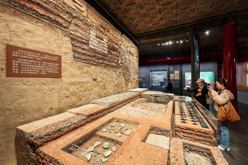 Le résultat le plus frappant est condensé sur un mur d'exposition : la section transversale numéro JP24 reconstituée à l'échelle 1 : 1. Les multiples traces de fouilles révèlent l'entrelacement des vestiges des fondations et autres structures des dynasties Yuan, Ming et Qing ; des éléments de construction, céramiques et ossements animaux allant de la dynastie Jin à la dynastie Qing apparaissent sporadiquement.